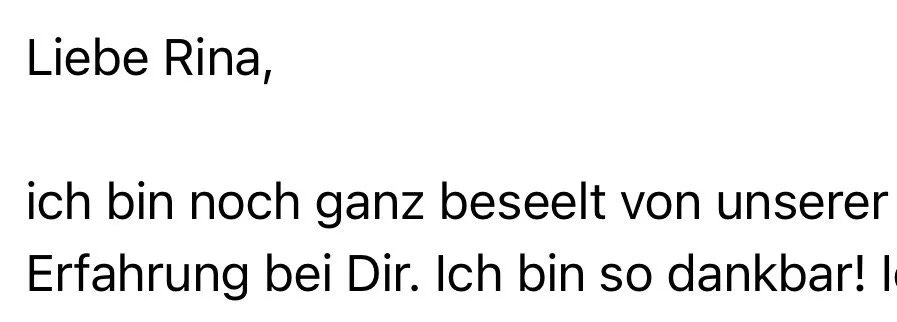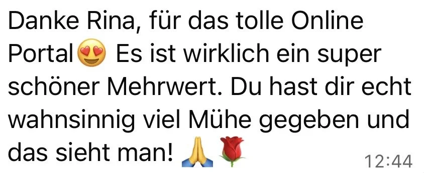 Ich wertschätze deine Offenheit und dein Vertrauen, dich auf den Prozess einzulassen – und wünsche mir im Gegenzug einen dankbaren, respektvollen Umgang miteinander und mit mir – auch wenn mal nicht alles perfekt läuft.